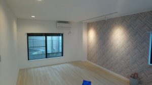 ここも壁の1面だけが違う壁紙です。