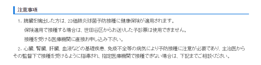 さて、肺炎球菌ワクチン接種の情報をいろいろと調べておりましたら、ワタクシの住んでいる世田谷区のウェブサイトににこんな記述がありました。
