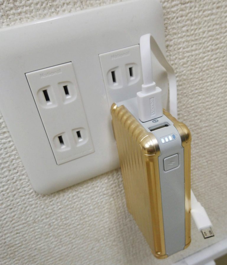 常にコンセントに挿しているので、モバイルバッテリーは常に満充電。