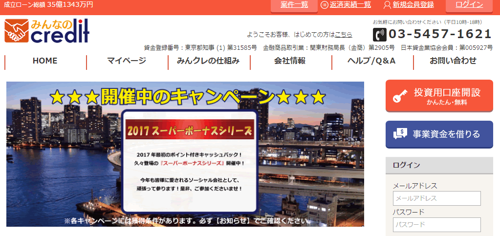 ということで、ほかのソーシャルレンディングにもいくらか投資したいと思い、みんなのクレジットでも投資を開始します。