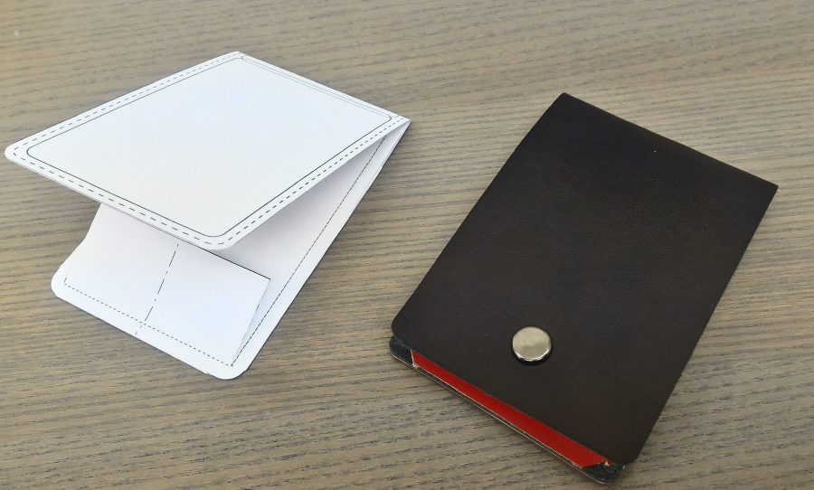 まずは、厚紙で作ってから寸法確認してから端切れの革で。