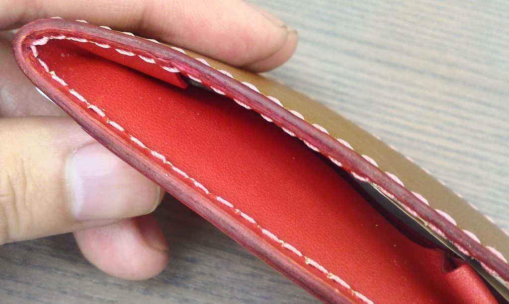 また縫い目をコバから従来の3mmから2mmの位置にし、見えにくいですがコバの処理なども施し、細部まで手を入れました。