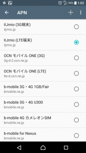すると今まで表示されていないかった、APN設定が表示されるようになり、ここでIIJmio(3G端末)ではなくIIJmio(LTE端末)に変更すると無事データ通信ができるようになりました。